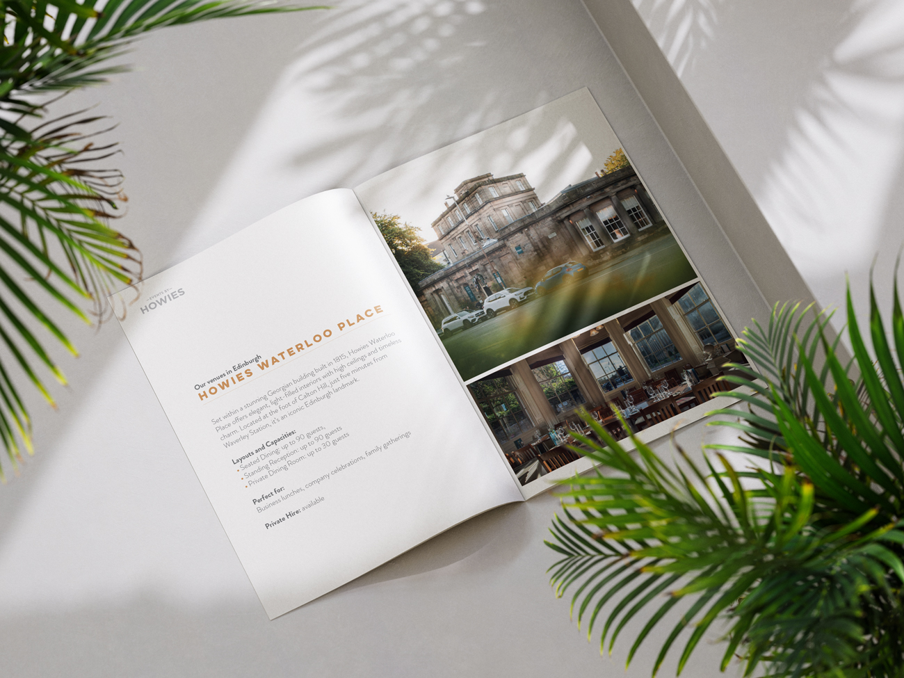 It’s been a busy period in our range of work for Howie’s, the well-known and highly respected, family-run restaurant and events business in Edinburgh. We have rebranded the events side of the operation – now marketed as Events by Howies – and created a new brand identity, while also aligning the family of visual identities and messaging across platforms to reflect the brand tone.